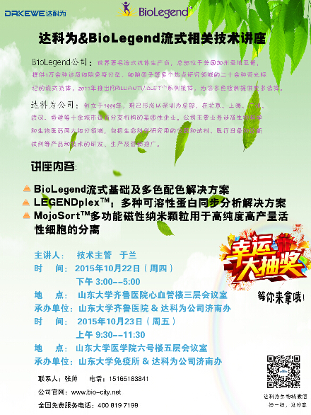 達(dá)科為公司技術(shù)主管于蘭做主要講解,內(nèi)容包括“BioLegend流式基礎(chǔ)及多色配色解決方案”,“LEGENDplexTM: 多種可溶性蛋白同步分析解決方案”,“MojoSortTM多功能磁性納米顆粒用于高純度高產(chǎn)量活性細(xì)胞的分離”。