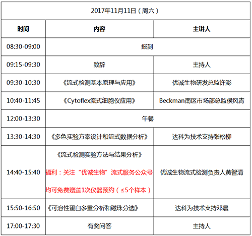 抓住秋天的尾巴,流式培訓班要來長沙啦。本次達科為生物攜手優(yōu)誠生物,為熱愛流式學習的您準備了內容豐富的流式相關理論課程及實驗課程。達科為生物作為國內一流的生物試劑供應商,2017年在南京、杭州、武漢、北京、蘇州、溫州、鄭州等地舉辦了二十余場免費流式培訓班,參加培訓人員達到3000人,取得了熱烈的反響和良好的反饋。優(yōu)誠生物是湖南省乃至全國內的優(yōu)秀的科研服務商,提供從課題設計、實驗實施到成果發(fā)表與轉化的全方位一站式服務。本次雙方合作,共同為您獻上一場流式盛宴。