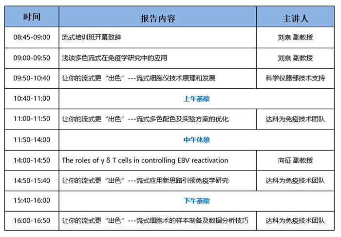4月12日,由達(dá)科為與南方科技大學(xué)醫(yī)學(xué)院、南方科技大學(xué)公共分析測試中心合作的流式培訓(xùn)班即將開課。理論課程名額120人,實(shí)操課程中流式多色實(shí)驗(yàn)招收32名學(xué)員,多因子實(shí)驗(yàn)招收8名學(xué)員,磁珠分選實(shí)驗(yàn)招收8名學(xué)員,名額有限,歡迎大家根據(jù)實(shí)驗(yàn)內(nèi)容對號入座參加流式培訓(xùn)班課程。