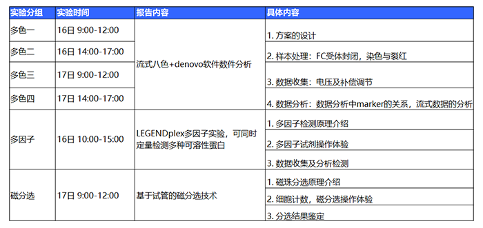 *注:請注意多色一、二、三、四為同一實驗,請根據(jù)自己的時間報名,請勿重復報名。上機實訓多色實驗擬招40人,多因子實驗與磁分選實驗分別擬招10人。