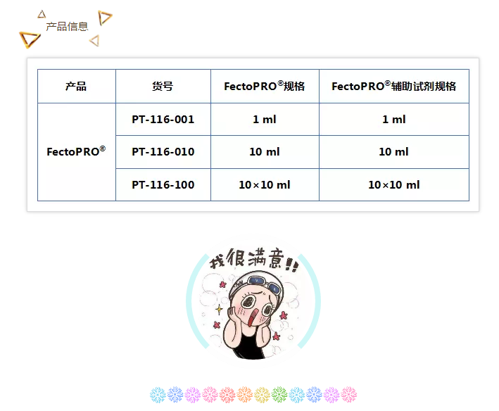 FectoPRO?保證不含動(dòng)物源成分,且限定化學(xué)成分。每個(gè)生產(chǎn)批次都經(jīng)過系統(tǒng)化的批次管理和出廠測試。采用先進(jìn)的質(zhì)控流程:蛋白質(zhì)生產(chǎn)率、細(xì)胞活性及完全無菌。