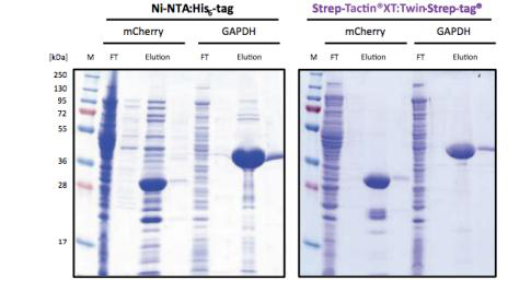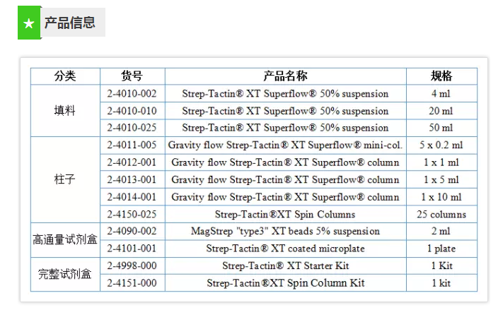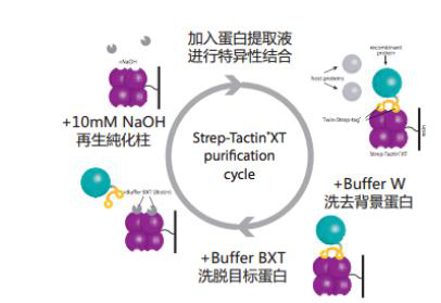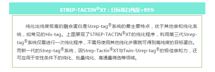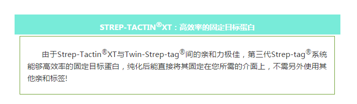 Strep-tag?是IBA life sciences基于生物素(Biotin)和鏈霉親和素(Streptavidin)之間的結(jié)合反應(yīng)開發(fā)的蛋白純化系統(tǒng)。第三代Strep-tag?系統(tǒng):「Strep-Tactin?XT:Twin-Strep-tag?」蛋白純化系統(tǒng),其結(jié)合力可達(dá)pM級(jí)別但仍保持結(jié)合的可逆性和固定化蛋白的溫和復(fù)蘇能力。因此,用Strep-Tactin?XT 系統(tǒng)能有效提高您目標(biāo)蛋白的純度,解決您實(shí)驗(yàn)中所遇到的常見問(wèn)題。