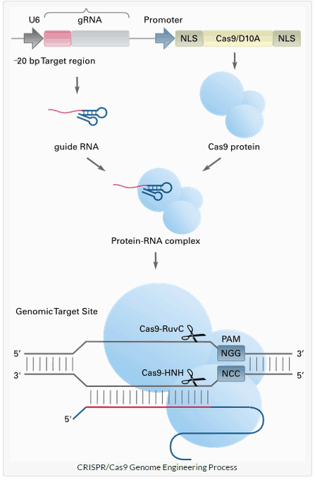CRISPR/Cas9是近幾年發(fā)展起來的基因編輯技術(shù),彌補了傳統(tǒng)基因編輯技術(shù)的諸多不足。Cas9蛋白可以在20nt左右的向?qū)NA介導(dǎo)下切割特定的基因組位點,而且?guī)缀蹩梢栽谌魏挝恢冒l(fā)揮作用。只要稍加改造,就可以應(yīng)用于基因表達調(diào)控、表觀基因組修飾及活體成像領(lǐng)域。