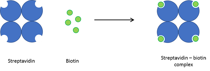 這對具有高親和力的蛋白常被偶聯(lián)到抗體或蛋白,其中biotin常被偶聯(lián)到抗體或配體,streptavidin偶聯(lián)標(biāo)記物如熒光素、HRP或AP、NanoGold等,如此通過Biotin—Streptavidin橋連來可實現(xiàn)間接檢測靶標(biāo)。