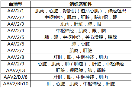 目前發(fā)現(xiàn)的AAV有AAV1~AAV11、DJ等12種不同的血清型,主要區(qū)別在于衣殼蛋白Cap的不同,并決定不同血清型AAV對不同的組織和細(xì)胞有不同的感染效率。