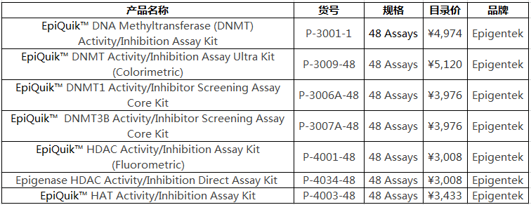 Epigentek還為您提供表觀遺傳相關(guān)的DNMT, HDAC和HAT核提取物檢測(cè)試劑盒。