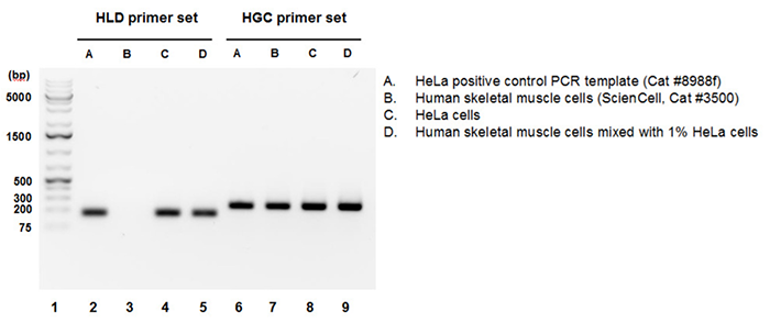 人gDNA對照引物組分(HGC)識別并擴(kuò)增包括HeLa細(xì)胞在內(nèi)的所有人細(xì)胞共有的共同基因組區(qū)域。