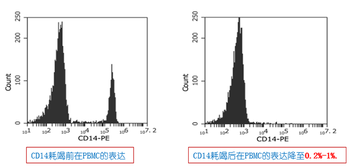例2:pluriSpin? Human MonocyteDepletion(Cat#19-01002-31),耗竭之后單核細胞在PBMC的表達降至0.2%-1%.: