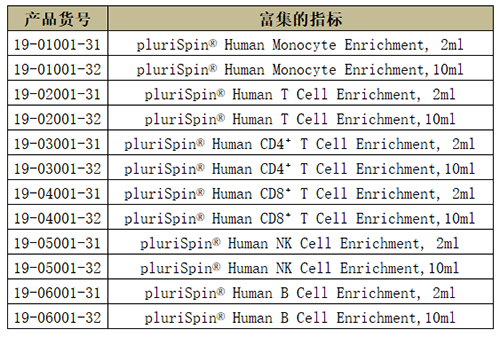針對少量全血樣本通過淋分液分離PBMC時細胞損失太多或分離效果不好時,這里給大家分享pluriSelect另一口碑不錯用于全血樣本的富集和耗竭產(chǎn)品,只需要1ml全血樣本與對應指標的產(chǎn)品按照一定的體積比孵育,然后進行break off離心方式就可以達到對應初步的細胞富集和耗竭效果。能保證了后續(xù)要研究細胞的得率和純度,同時獲得的細胞純凈不帶磁珠。適合的樣本類型包括:PBMC, Buffy Coat, Cord Blood, Bone Marrow, Primary Cell Solution。原理非常簡單實用也讓小編腦洞大開。