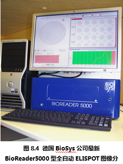 德國Bio-Sys公司從上世紀(jì)80年代開始就致力于生物圖像識別領(lǐng)域,在進(jìn)入ELISPOT圖像分析儀市場后一直以其先進(jìn)的ELISPOT斑點(diǎn)識別技術(shù)聞名。德國Bio-Sys公司首先解決了顯微攝像系統(tǒng)難以定位96孔板上的每一個(gè)孔的問題。其解決方法基于圖像識別技術(shù),利用板孔邊壁和真正的孔底的細(xì)微差別,在機(jī)械定位的基礎(chǔ)上,通過軟件識別來進(jìn)一步提高每孔的定位精度。是目前市場上所有ELISPOT圖像分析儀中唯一能夠完整識別整個(gè)孔底ELISPOT斑點(diǎn)圖像的設(shè)備。在對真假斑點(diǎn)的分辨中,德國Bio-Sys公司除了具備完善的物理學(xué)多參數(shù)識別技術(shù),還特別針對ELISPOT斑點(diǎn)形成的生物學(xué)過程,通過細(xì)胞因子顯色后的“光密度”峰值積分分析方法,精確分辨真假斑點(diǎn)、融合斑點(diǎn)等復(fù)雜情況。Bioreader系列ELISPOT圖像分析儀國外大多數(shù)較有經(jīng)驗(yàn)的ELISPOT實(shí)驗(yàn)室推崇的特點(diǎn)為:專業(yè)性和參數(shù)全開放性。因?yàn)镋LISPOT實(shí)驗(yàn)的復(fù)雜性,ELISPOT斑點(diǎn)形成在不同的實(shí)驗(yàn)條件下有非常大的差異。這就對ELISPOT圖像分析儀提出了較高的要求:既要能夠保證斑點(diǎn)計(jì)數(shù)的真實(shí)性和一致性,又要能夠根據(jù)不同情況,通過實(shí)驗(yàn)者的判斷來校正儀器對ELISPOT斑點(diǎn)識別的標(biāo)準(zhǔn)。要同時(shí)實(shí)現(xiàn)以上兩個(gè)要求,唯一的辦法是將儀器的所有判斷標(biāo)準(zhǔn)向ELISPOT實(shí)驗(yàn)者開放,實(shí)現(xiàn)實(shí)驗(yàn)者和儀器的互動。在這一方面,德國Bio-Sys公司始終走在ELISPOT斑點(diǎn)識別領(lǐng)域的前列,新的Bioreader-4000型(圖8.3)和Bioreader -5000(圖8.4) 型在專業(yè)性和適用性方面都領(lǐng)先于其他廠家的設(shè)備。