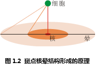 ELISPOT板膜,就會(huì)被板膜上的包被抗體捕獲。在所有從細(xì)胞到斑膜的路徑中,有條路徑短,這就是位于細(xì)胞正下方到板膜的垂直距離。路徑越短,擴(kuò)散中耗散損失就越少,到達(dá)該點(diǎn)的細(xì)胞因子就越多,將來顯色的時(shí)候顏色就越深。以垂直距離點(diǎn)為圓心,向外畫一系列的同心圓,同心圓的直徑越大,細(xì)胞因子擴(kuò)散的距離就越長(zhǎng),耗散越多,到達(dá)的細(xì)胞因子就越少,顏色就越淺。當(dāng)超過一定距離之后,擴(kuò)散到達(dá)的細(xì)胞因子就減少到背景水平了,這就是斑點(diǎn)的邊界。